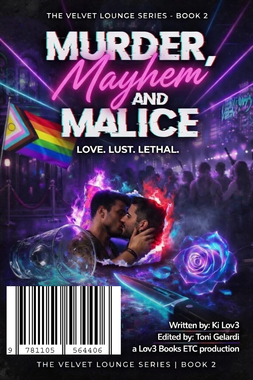 Murder, Malice, and Mayhem: The Velvet Lounge series Book 2 LGBTQ+ Crime Thriller Description: Nearly a year after stopping a deadly conspiracy, the Velvet Lounge crew is forced back into action when new threats emerge. As secrets resurface and danger escalates, Sophia, Jordan, and the team must fight to protect their community before history repeats itself. A gripping LGBTQ+ crime thriller filled with romance, suspense, and high-stakes action.